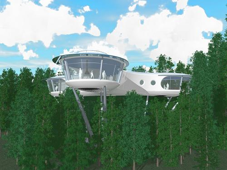 Rumah desain arsitektur, Sybarite, mendesain rumah pohon modular ini untuk pendekatan baru dan berkelanjutan dalam membangun rumah di pedesaan. Desainnya berkonsentrasi pada view di atas pohon. Rumah ini memanfaatkan tenaga angin sebagai sumber energi untuk penerangan. Rumah pohon ini didesain knock-down (tinggal rakit saja) hanya dalam waktu dua minggu. Ringan dan bahannya bersifat recycling.