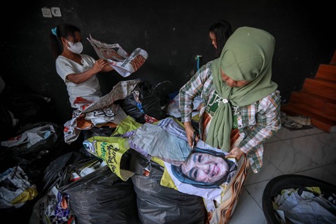Foto: Aksi Emak-emak di Jakut Sulap Baliho Kampanye Jadi Tas