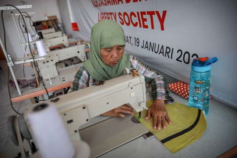 Kesibukan sejumlah perempuan di Training Center Liberty Society di Tanjung Priok, Jakarta Utara, Kamis (21/3). Foto: Jamal Ramadhan/kumparanMereka merupakan warga lokal yang tinggal di daerah Warakas, Tanjung Priok. Foto: Jamal Ramadhan/kumparanPara ibu rumah tangga itu mengaku senang bergabung dengan komunitas ini karena lebih produktif. Foto: Jamal Ramadhan/kumparanSelain mendapat pelatihan menjahit, mereka juga mengerjakan proyek Baliho Reborn, yakni mengubah baliho sampah alat peraga kampanye (APK) menjadi tas dufel. Foto: Jamal Ramadhan/kumparanBaliho yang terkumpul itu di potong sesuai ukuran, dicuci dan dijemur sebelum akhirnya dijahit menjadi tas. Foto: Jamal Ramadhan/kumparanFoto: Jamal Ramadhan/kumparanFoto: Jamal Ramadhan/kumparanFoto: Jamal Ramadhan/kumparanFoto: Jamal Ramadhan/kumparan