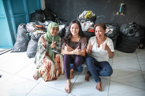 Selain mendapat pelatihan menjahit, mereka juga mengerjakan proyek Baliho Reborn, yakni mengubah baliho sampah alat peraga kampanye (APK) menjadi tas.