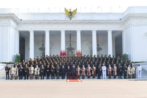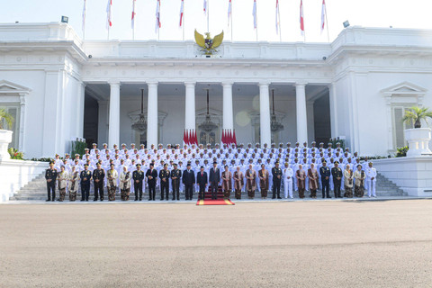 Presiden Jokowi melantik melantik Prasetya Perwira TNI-Polri di Halaman Istana Merdeka, Jakarta, Selasa (16/7). Foto: Muhammad Adimaja/ANTARA FOTOUpacara pelantikan diikuti 906 perwira yang terdiri dari 17 Capaja Akademi Militer (Akmil), 129 Capaja Akademi TNI AL (AAL), 113 Capaja Akademi TNI AU (AAU), dan 247 Capaja Akademi Kepolisian (Akpol). Foto: Muhammad Adimaja/ANTARA FOTOPelantikan perwira TNI-Polri ini dihadiri Menteri Pertahanan Prabowo Subianto, Menteri Dalam Negeri Tito Karnavian, Menko Polhukam Hadi Tjahjanto, Ketua DPR Puan Maharani, Ketua MPR Bambang Soesatyo (Bamsoet), Panglima TNI Agus Subiyanto, dan Kapolri Jenderal Listyo Sigit Prabowo. Foto: Muhammad Adimaja/ANTARA FOTOFoto: Muhammad Adimaja/ANTARA FOTO
