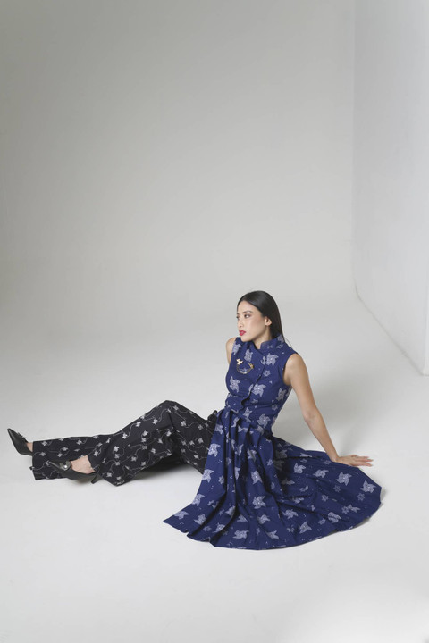 Jika dilihat sekilas, rangkaian busananya menonjolkan ciri khas Wilsen Willim. Ini terlihat dari motif batik cap yang dihadirkan berupa pinwheel atau kincir angin.