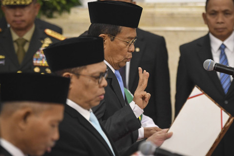 Rohaniwan mengambil sumpah jabatan jajaran pimpinan dan Dewan Pengawas (Dewas) KPK periode 2024-2029 di Istana Negara, Jakarta, Senin (16/12/2024).