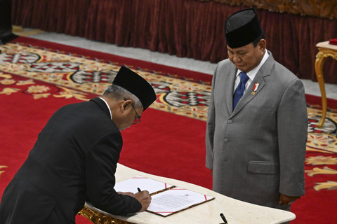 Tampak Presiden Prabowo Subianto turun secara langsung untuk melantik para jajaran pimpinan dan Dewas KPK periode 2024-2029.