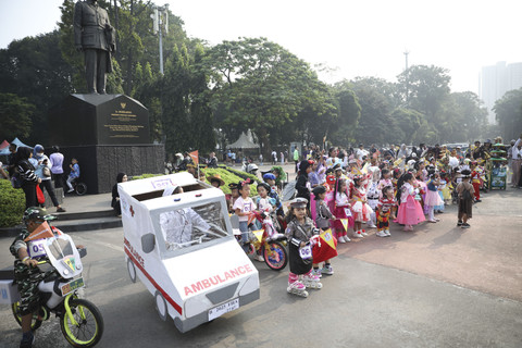 Antusiasme dari anak-anak yang mengenakan beragam kostum mulai unik-unik dan kreatif meramaikan acara sejak pagi. Ada yang menggunakan kostum Moana, peri, NASA, kostum daerah, bahkan kostum dokter lengkap dengan ambulansnya.