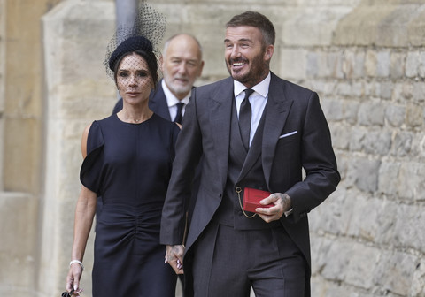 Legenda sepak bola Inggris David Beckham berpose dengan menunjukkan medali gelar bangsawan bersama istri Victoria Beckham di Kastil Windsor, Inggris, Selasa (4/11/2025). Foto: Andrew Matthews / POOL / AFP