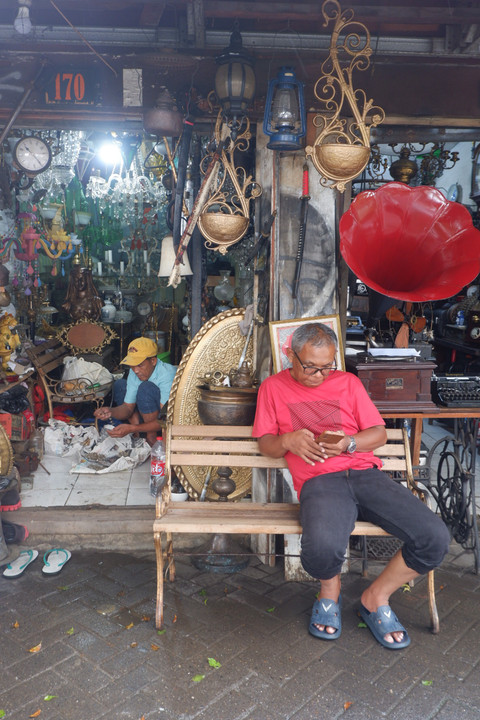 Sejumlah penjual melakukan aktivitas sembari menunggu barang dagangan antiknya laku terjual di Pasar Barang Antik, Jalan Surabaya, Menteng, Jakarta, Rabu (21/1/2026). Foto: Melano Shalusa/kumparanPasar yang sempat menjadi surga barang antik legendaris bagi warga sekitar Jakarta pada tahun 2000 awal ini kini tampak sepi. Foto: Melano Shalusa/kumparanBanyak dari para pedagang akhirnya hanya pasrah dan justru barangnya hanya menjadi "pajangan" di depan kios, atau menawari sejumlah pengunjung yang hanya ingin berburu foto saja. Foto: Melano Shalusa/kumparanAgus, salah satu penjual barang antik, mengaku bahwa penjualannya menurun drastis, terutama saat pandemi COVID-19. Foto: Melano Shalusa/kumparanAgus menceritakan seringkali barang dagangannya tidak ada yang laku sama sekali. Ia harus memutar otak untuk mencari pemasukan agar memenuhi kehidupan keluarganya, salah satunya menjadi kuli panggul. Foto: Melano Shalusa/kumparanDi masa jayanya, pasar barang antik yang cukup legendaris di Jakarta ini pernah dikunjungi mantan Presiden ke-43 Amerika Serikat, Bill Clinton pada tahun 1994. Foto: Melano Shalusa/kumparanFoto: Melano Shalusa/kumparan