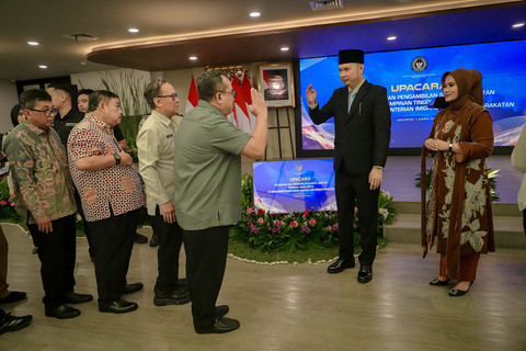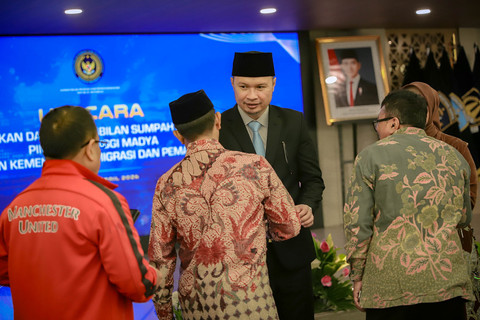 Hendarsam Marantoko menyampaikan keterangan kepada awak media usai pelantikannya sebagai Direktur Jenderal Imigrasi di lingkungan Kementerian Imigrasi dan Pemasyarakatan (Imipas), Jakarta, Rabu (1/4/2026). Foto: Jamal Ramadhan/kumparanPenunjukan Hendarsam sebagai Dirjen Imigrasi dilakukan berdasarkan Keputusan Presiden Nomor 187/TPA Tahun 2025. Foto: Jamal Ramadhan/kumparanSejumlah staf Kementerian Imipas tampak memberikan ucapan selamat dengan berjabat tangan usai prosesi pelantikan berlangsung. Foto: Jamal Ramadhan/kumparanFoto: Jamal Ramadhan/kumparanFoto: Jamal Ramadhan/kumparanFoto: Jamal Ramadhan/kumparanFoto: Jamal Ramadhan/kumparanFoto: Jamal Ramadhan/kumparanFoto: Jamal Ramadhan/kumparanFoto: Jamal Ramadhan/kumparanFoto: Jamal Ramadhan/kumparanFoto: Jamal Ramadhan/kumparan